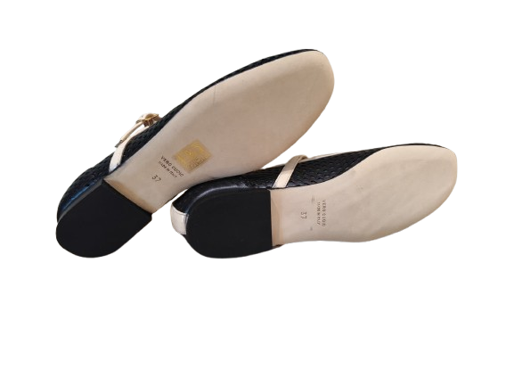 Ballerine flat in pelle di vitello traforata con cinturino.