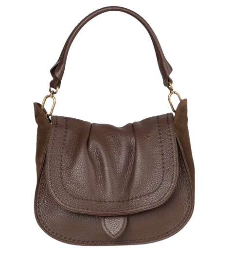 Borsa a spalla di piccole dimensioni in pelle di vitello e camoscio.