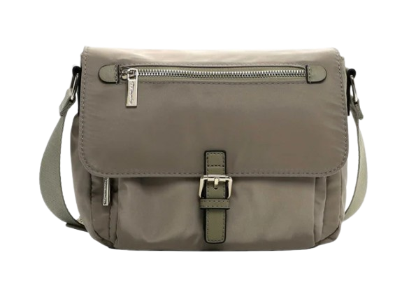 Borsa a tracolla di piccole dimensioni in nylon e similpelle.