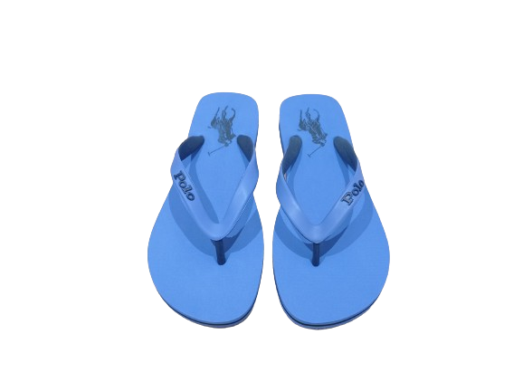 Infradito in gomma con logo blu stampato.