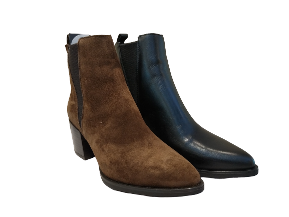 Disponibile in camoscio marrone o in pelle nero.